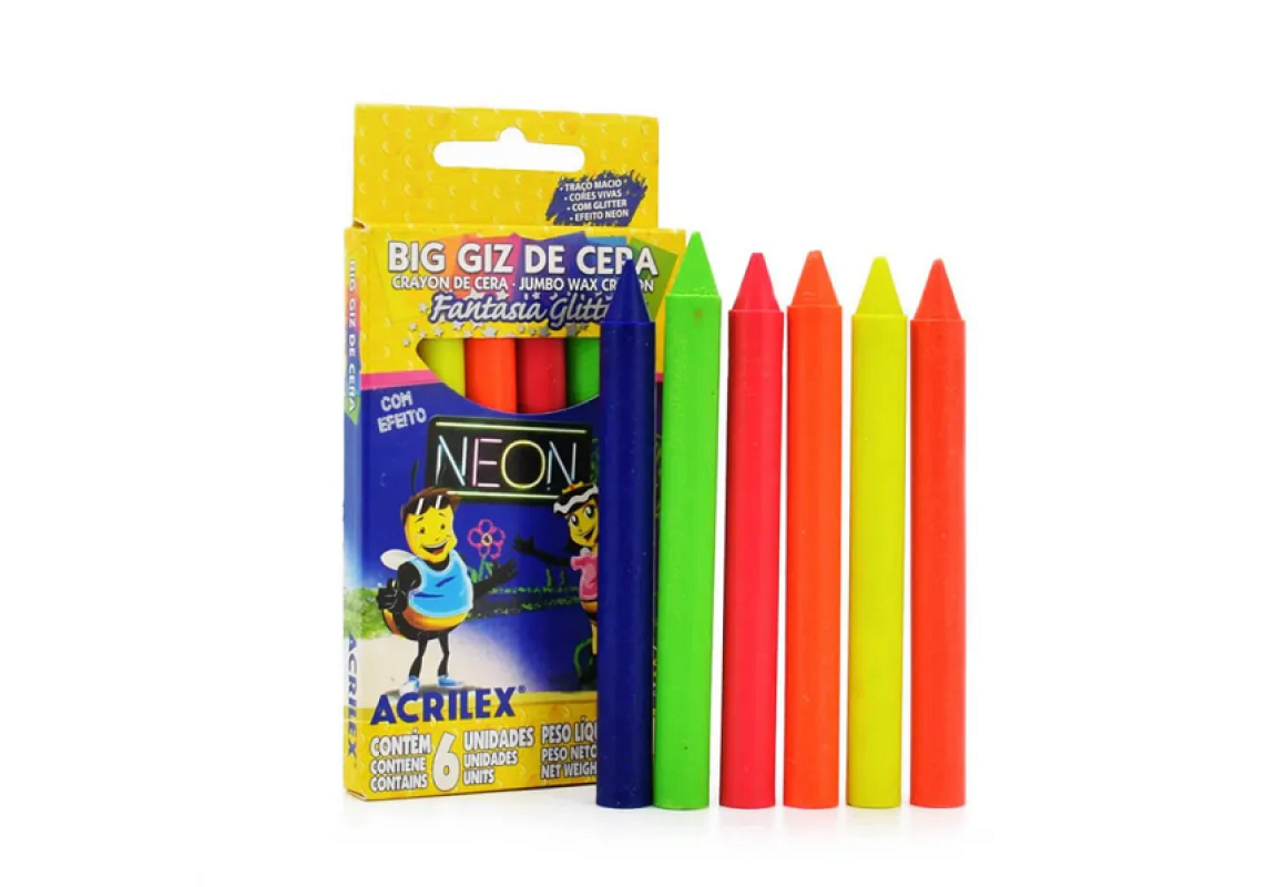 GIZ DE CERA BIG NEON GLITTER ACRILEX C/6